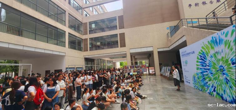 活动中,来自全校各个学院、不同民族的学生汇聚在一起,共同体验扎染艺术,以艺术创作为媒介,以发现美、欣赏美、创造美为链接,一起观展一起听课,一起分享故事一起畅享心得,聊不同学科不同空间不同维度中的美与创意,随意扎、尽情染,在手艺与色彩的物理交流、染料与布料的化学反应中感受自然而然的美丽邂逅,品味千百年来中华优秀传统文化的折射缩影,铭记“在这片辽阔、美丽、富饶的土地上,各族人民都有一个共同家园,就是中国;都有一个共同身份,就是中华民族;都有一个共同名字,就是中国人;都有一个共同梦想,就是实现中华民族伟大复兴。”