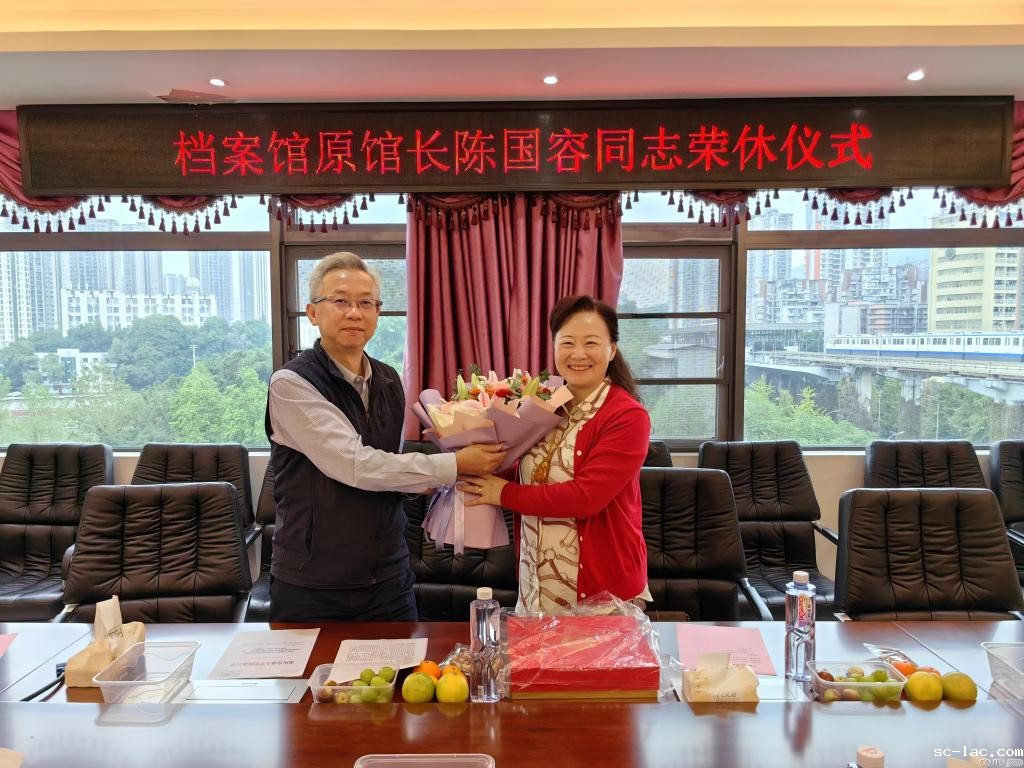 2024年10月24日下午,在这个充满敬意的时刻,档案馆为长期致力于档案事业的原档案馆馆长、研究馆员、重庆市档案局“555档案人才”档案拔尖人才、重庆市档案专业人才、国家级档案专家陈国容同志举行了荣誉退休仪式。