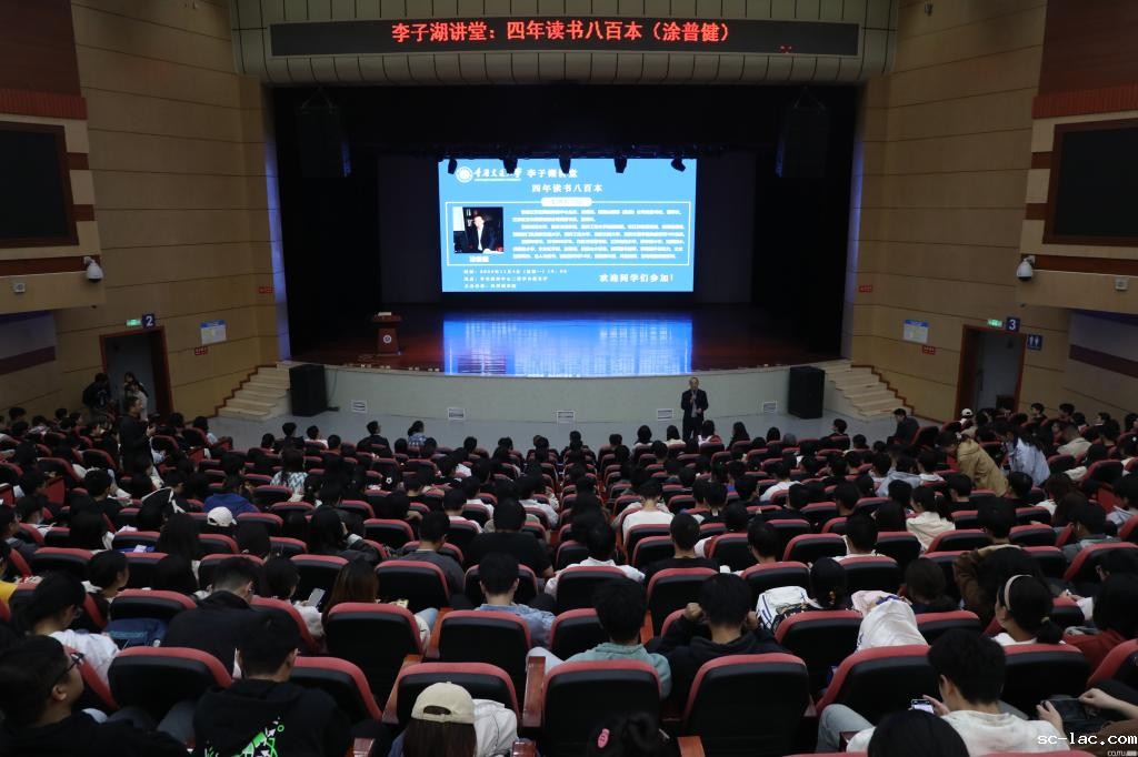 为深化青年学子对阅读价值的认知,进一步激发广大学子对知识无尽探索的热情,11月4日晚,科学城学院在科学城校区学生活动中心二楼学术报告厅举办了李子湖讲堂,邀请原江津区网络传媒中心主任、总编辑涂普健作“四年读书八百本”主题讲座。科学城学院办公室、学工办相关同志,校区700余名学生到场聆听。