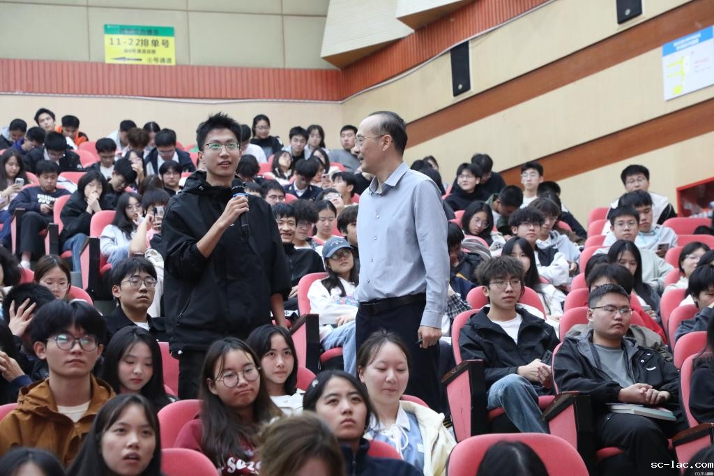 涂普健通过抽人提问、齐声朗诵等方式与同学们开展互动,了解同学们的感受、收获。面对面的沟通,适时穿插幽默的江津方言,让现场氛围轻松愉悦。同学们积极性高涨,多次鼓掌回应。