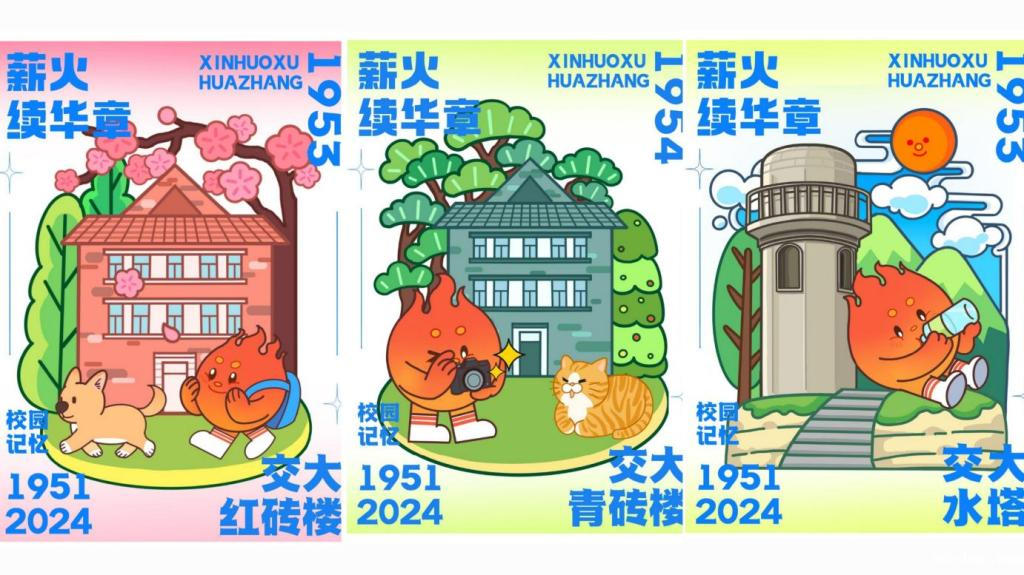 艺术设计学院视觉传达系李瑞欣同学介绍到,“薪火相传、弦歌不辍”,是我献礼的设计主题。薪火相传,是多少年来交大人传承和弘扬“两路”精神的星星之火,弦歌不辍是多少年来母校为党育人、为国育才的琴瑟歌诵绵延不绝。学校红砖楼、青砖楼、水塔等历史建筑群建于1953-1954年,见证了学校发展壮大的时代变迁与独特文化精神,是交大特有的“两路”精神的写照。我虽画不出那时开山凿路、修路建校的豪迈与激情,但我希望在学校73岁生日之际,能感受到此时此刻的我们依然牢记“一不怕苦、二不怕死,顽强拼搏、甘当路石,军民一家、民族团结”的两路精神,依然初心如磐,信念铿锵,潜心学习,淬炼技艺,为交大的源起,更为交大的荣光。