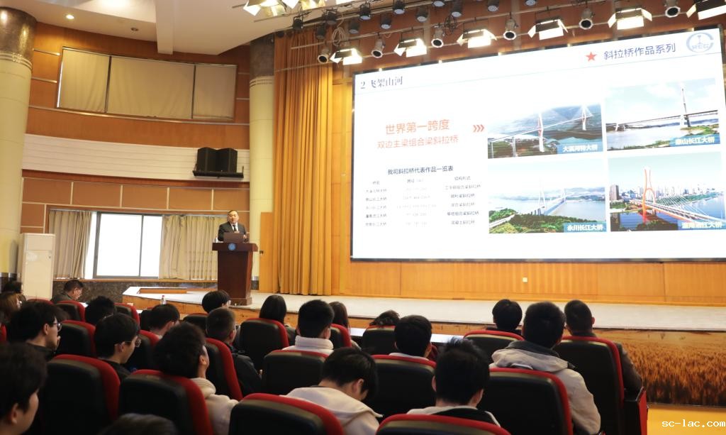 讲坛中,陈奉民以《山水重庆的桥梁,中铁长江的跨越》为主题,紧紧围绕“桥都”重庆的独特魅力,从桥都重庆、飞架山河、创新跨越、桥见未来四个角度展开深入浅出的讲解,他结合“桥都”重庆地形特征详细展示了中铁长江交通设计集团有限公司设计建设各类桥梁的心路历程,用自己热爱桥梁、致力于桥梁文化传播与技术推动的真挚情怀感染了在座的每一位老师和同学,为正在学习交通建设的同学们播种下了一颗希望的种子,激励着青年一代对交通建设的兴趣与激情。