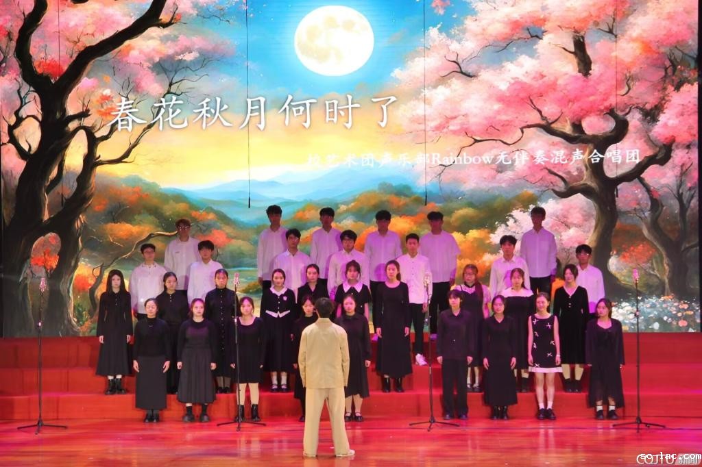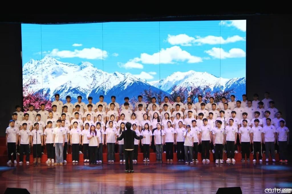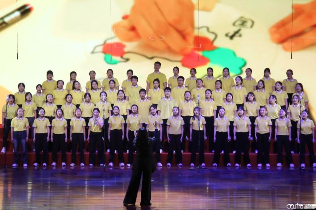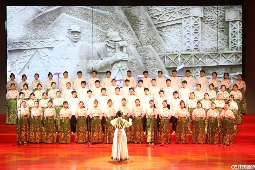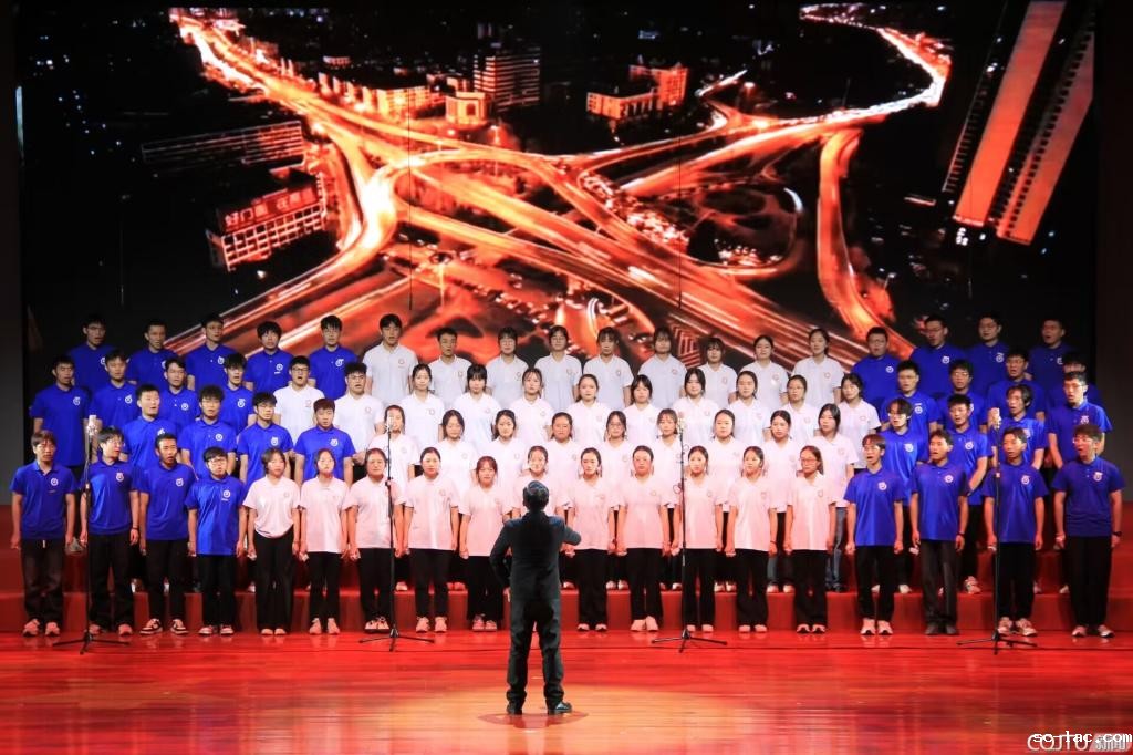 校艺术团演唱了由宫辉书记原创的歌曲《长江南岸七公里》,现场掌声连连。
