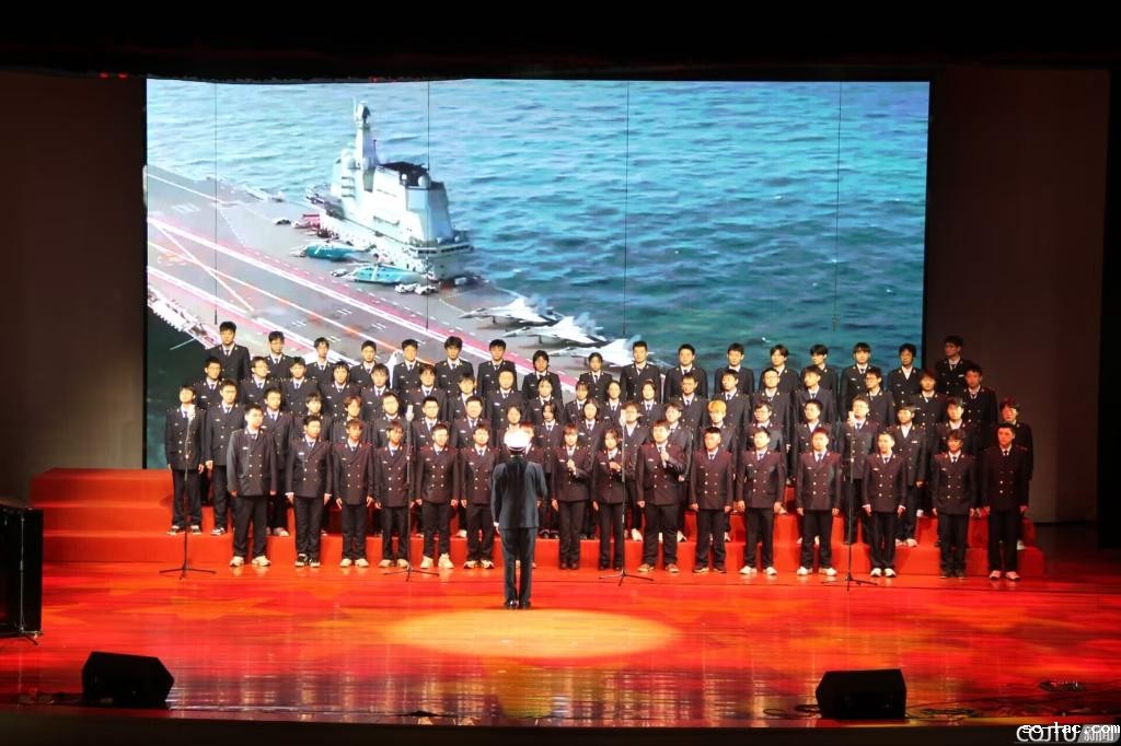 “穿越波涛乘风破浪,英雄的舰队向前方......”穿越波涛,乘风破浪;深海亮剑,壮志飞扬。航运学子带来歌曲《我们的舰旗高高飘扬》,他们以激扬的歌声,唱响对蔚蓝深海的热爱。