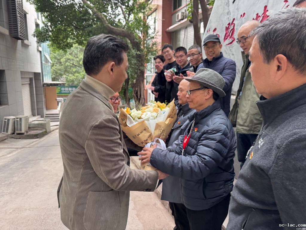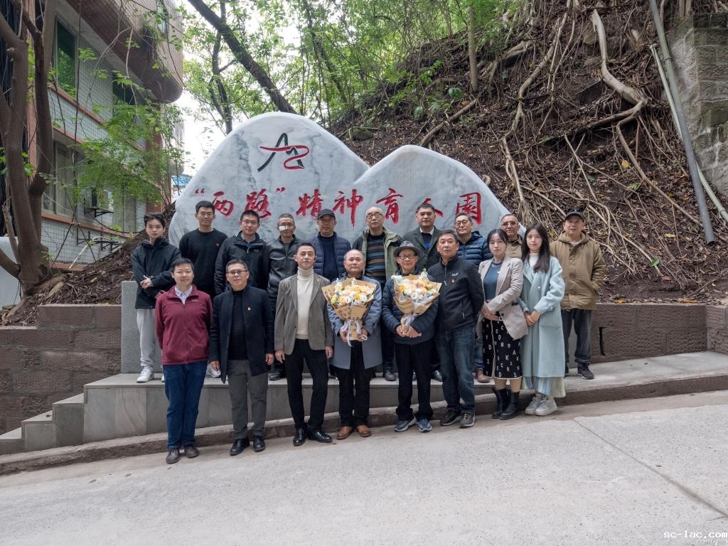 活动中,支部书记李强与组织委员罗建明为两位老教师献上鲜花,大家在育人园入口合影留念。