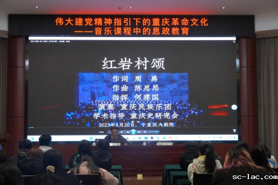 会议伊始,周勇教授分别从专业课程中的思想教育是“大思政”的重要形式与传统方式、伟大建党精神是共产党人革命精神之源、伟大建党精神滋养重庆革命文化和音乐作品中的重庆革命文化四个方面依次介绍了重庆革命文化在伟大建党精神指引下的传承与弘扬。