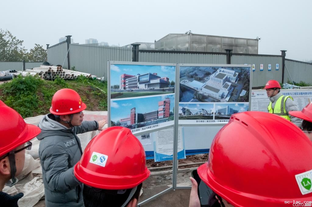 材料学院师生在接受安全教育宣讲并规范佩戴安全帽后有序进入施工现场参观学习。基建处负责工程现场管理的綦露老师详细为大家介绍了亚行项目工程概况、施工进度、施工工序等,并耐心解答同学们提出的专业问题。同学们将书本上的理论知识与工程实际相结合,详细了解建筑材料、结构设计、施工工艺等内容。