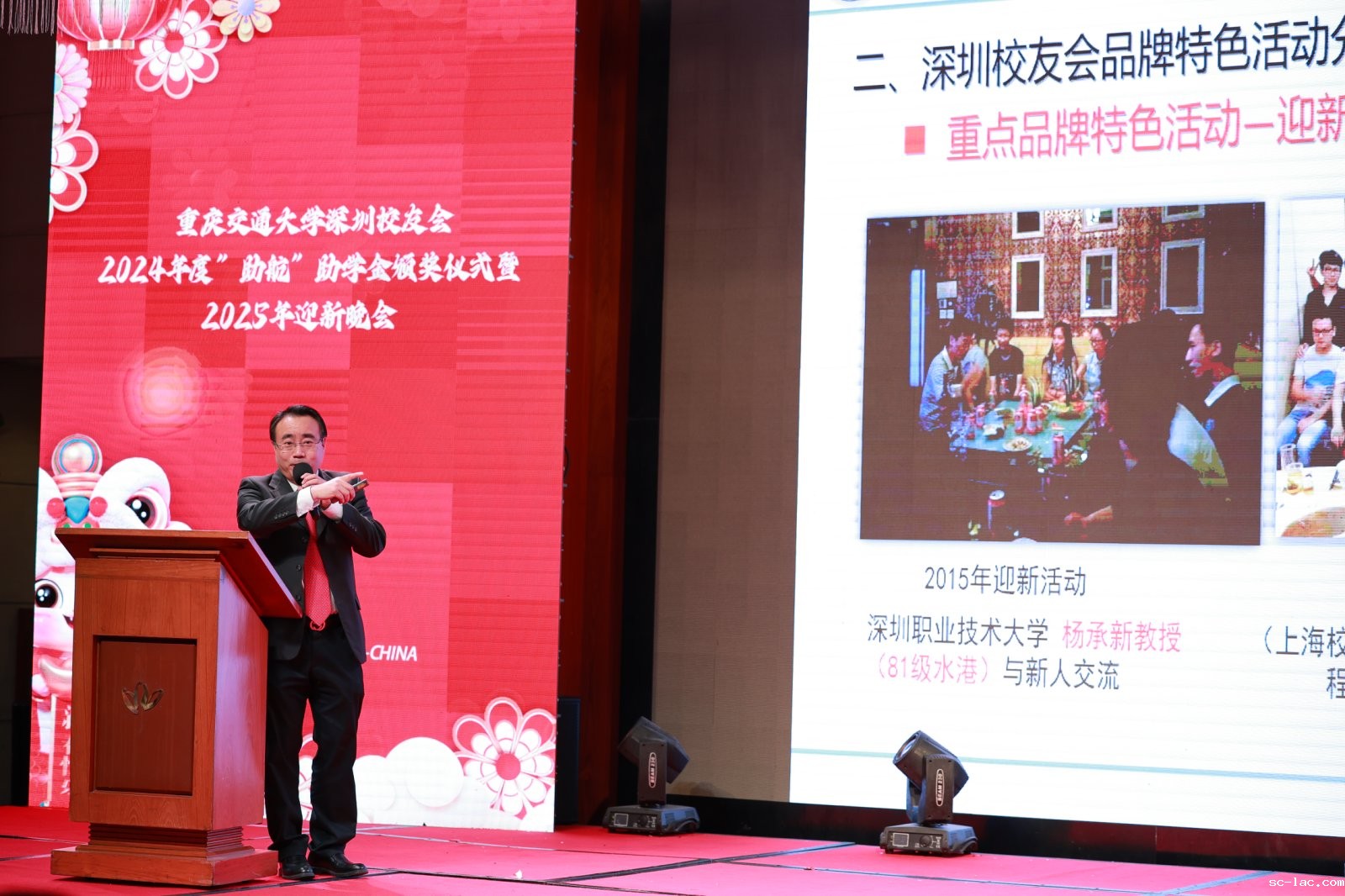 深圳校友会常务副会长兼秘书长肖文从迎新活动、助航基金发放、母校回访交流、文体活动几个方面介绍了2024年度在凝聚校友、回馈母校、服务社会等方面取得的显著成果;并满怀憧憬提出了2025年工作展望,表达了持续推动校友会发展、深化校友间联系、贡献母校未来的坚定信念。