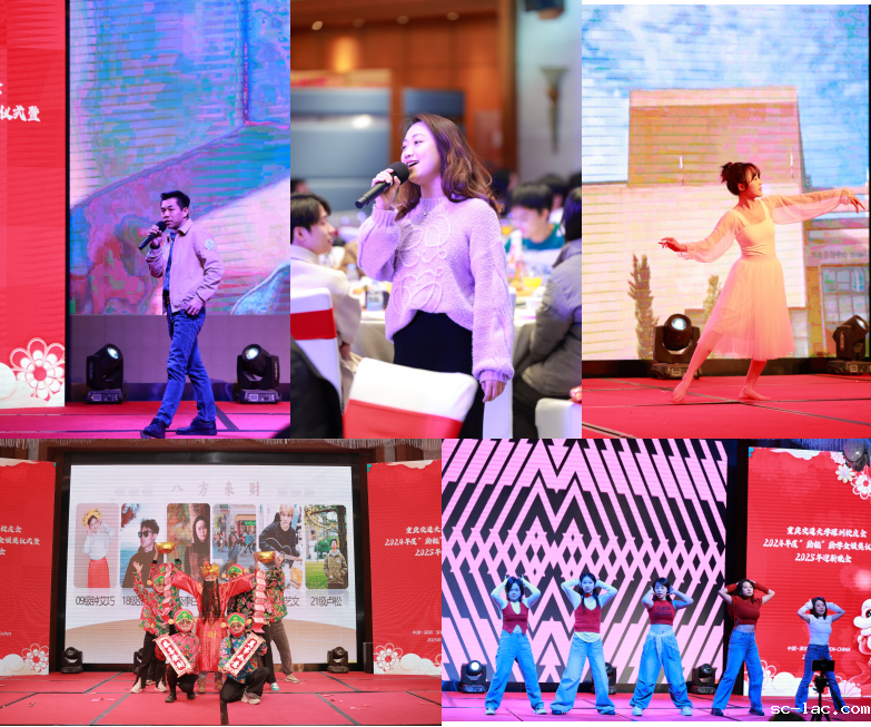 此外,晚会还穿插了爵士舞《风轻轻+Take day cash》、独唱《世界第一等》、舞蹈《春风十里》及《八方来财》等精彩节目。校友们用歌声、舞姿和朗诵等形式,表达了对母校的深深眷恋和对未来的美好憧憬。