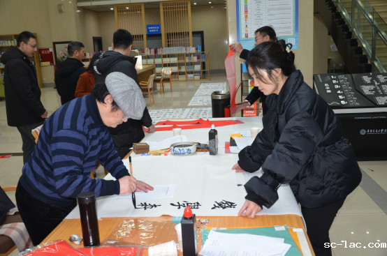 在明德书斋,书法家们为来馆的师生写春联100余幅。他们热情洋溢,与师生们亲切交流,现场气氛热烈。师生们纷纷排队领取春联,脸上洋溢着幸福的笑容。这些春联不仅为师生们带来了新年的祝福,也让他们感受到了传统文化的魅力。