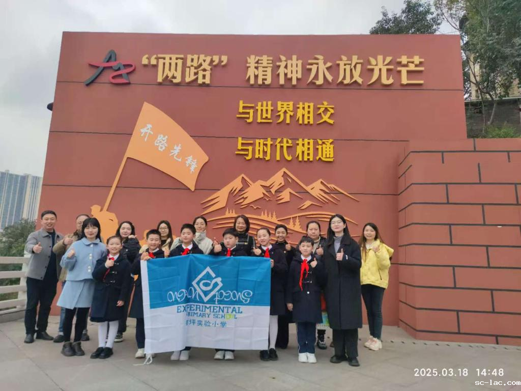南坪实验外国语小学师生代表参观了学校“两路”精神育人园,身临其境感受“两路”建设的艰辛历程,学习了“两路”精神的传承历史,深刻领会了“两路”精神的内涵,感受了重庆交大人的家国情怀及服务国家重大战略巨大成就。