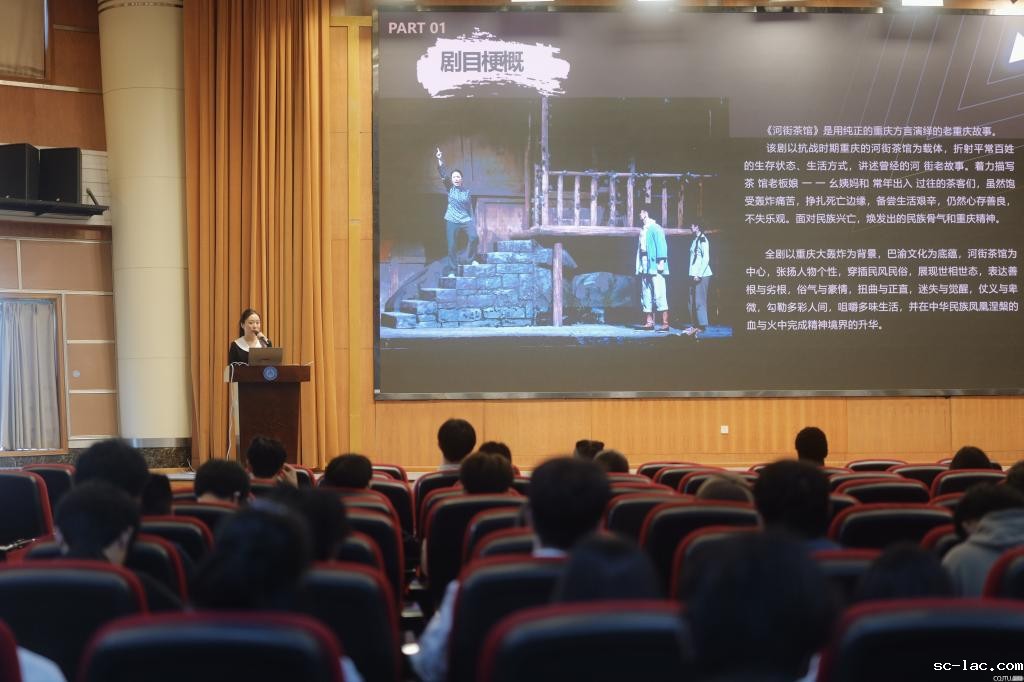 刘老师详细介绍了抗建堂的历史意义及重庆抗战戏剧文化的发展脉络,并分享了她对抗战戏剧文化传承的深刻理解。她还特别谈到在抗建堂演绎经典抗战话剧时的艺术感悟,回顾了自己进入话剧院以来参演的主要剧目,真诚地分享了个人的从艺心得和艺术成长历程。