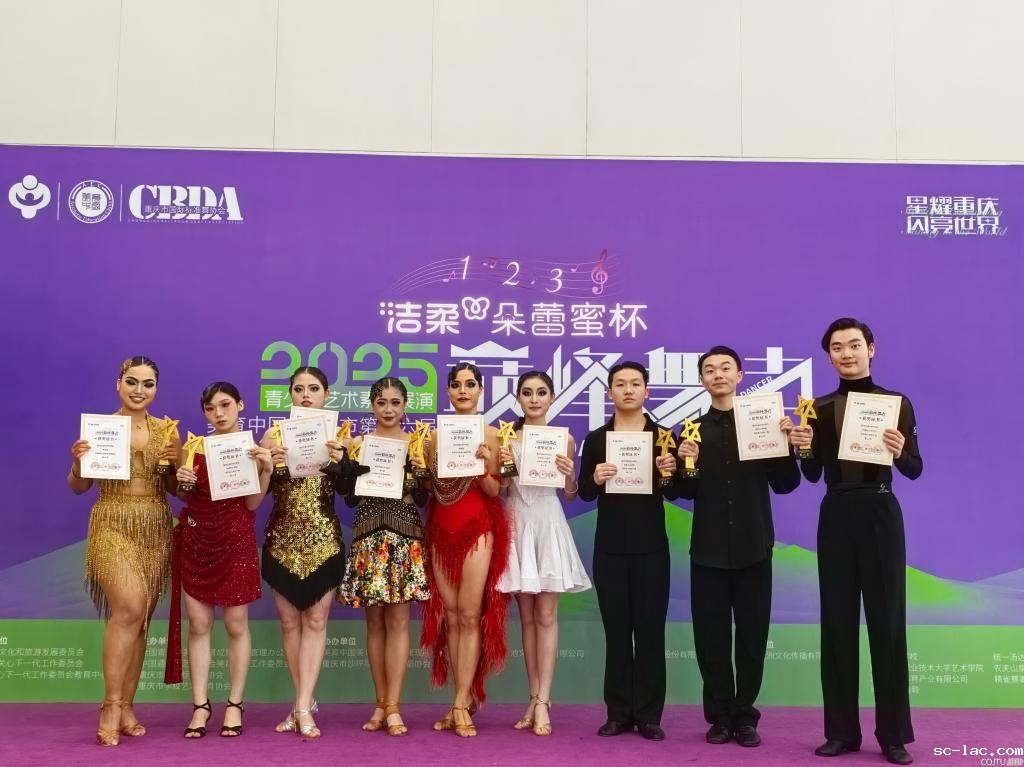 为强化学校美育功能,展现当代大学生的艺术活力,提升审美感知、艺术表现、创意实践等核心素养,老伟德网上娱乐大学生艺术团拉丁队积极组队参加2025年“洁柔朵蕾蜜杯”青少年艺术素质展演暨重庆市第十六届青少年国际标准舞锦标赛并斩获佳绩,荣获高等院校女单单项桑巴舞第一名、青年新人组拉丁舞第二名、业余新人组拉丁舞第二名、高等院校女单c 组拉丁舞第二名等八项荣誉。
