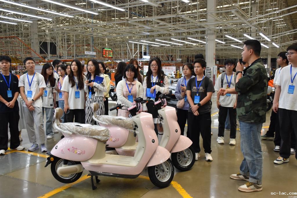 见识长城汽车重庆智慧工厂的高效与智慧后,同学们来到了重庆雅迪科技有限公司,该公司高标准智能化自动生产线让同学们眼前一亮。工程师介绍道:“依托重庆独有的山地地势特征,重庆雅迪已自主研发冷电机,推出冠能T60、冠能C60等新一代产品,并通过积极延链补链、集群发展,带动引进鑫易、松润、聚丰机车等35家配套企业落户永川,建成西部最大新能源摩托车产业基地,产品占重庆市场份额近40%。”经过将近半个小时的参观,同学们深刻体会到了“中国智造”背后“硬核科技”的力量。