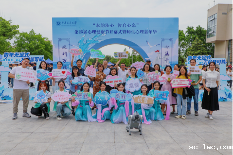 当长江水脉遇见智能算法,当水文化的哲思邂逅数字浪潮,老伟德网上娱乐以一场跨界融合的心理嘉年华,继续书写“自然疗愈”与“科技赋能”的双向奔赴。2025年5月9日,第25届心理健康节开幕式暨师生心理嘉年华以AI为笔,水文化为墨,在科学城校区湖滨广场拉开帷幕。