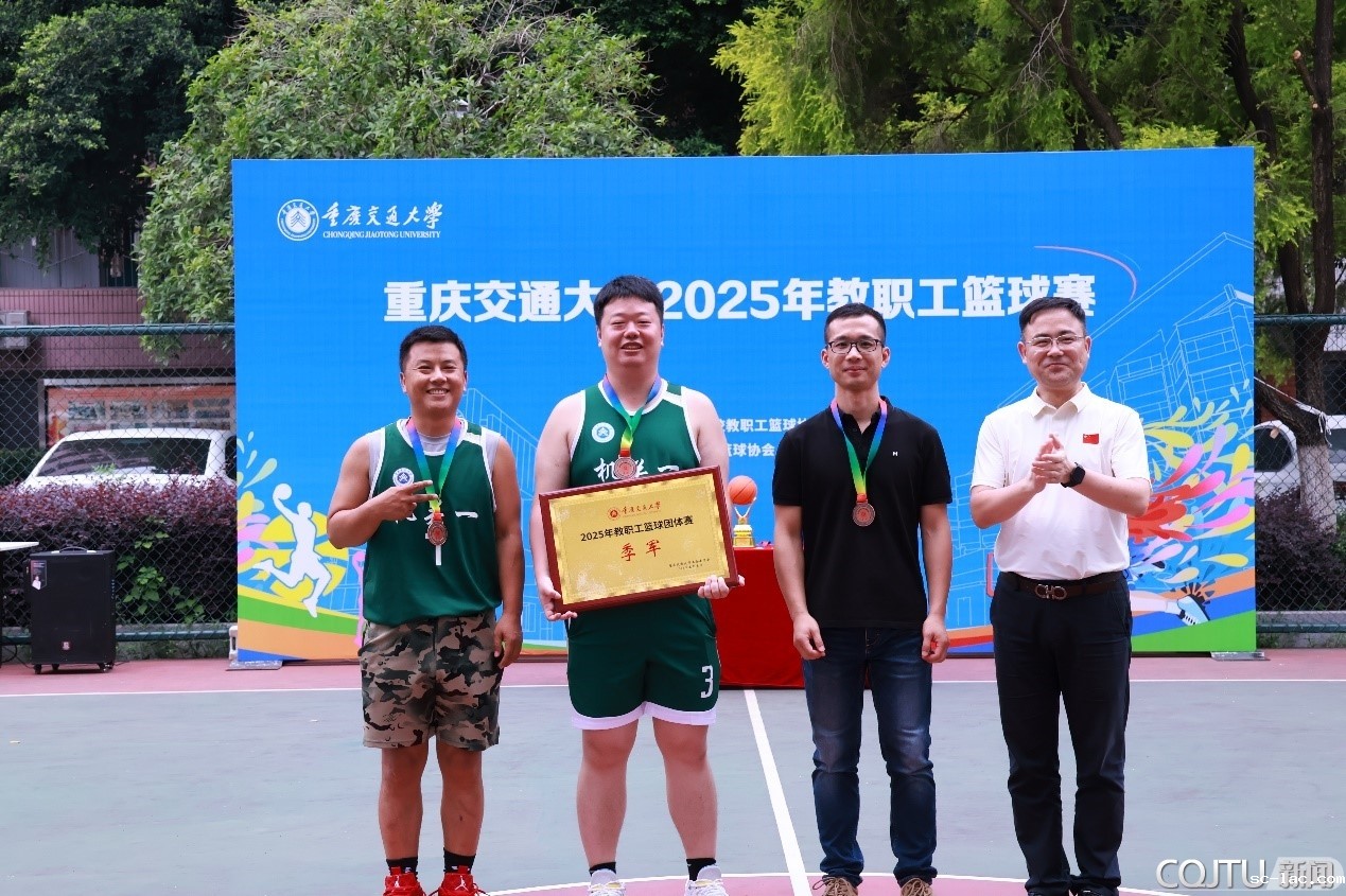5月30日下午,南岸校区中心运动场激情涌动,2025年教职工篮球赛迎来巅峰对决。历经小组循环赛、淘汰赛的激烈角逐,体育部与土木工程学院最终会师决赛,争夺本次比赛的冠军。校党委常委、副校长董绍江,校党委常委冯瑞胜到场观看了比赛。