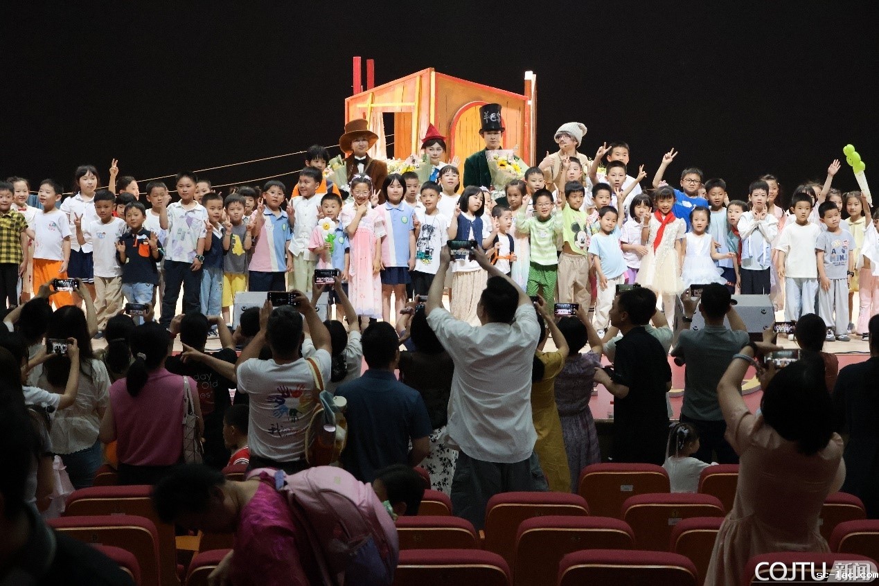 舞台上灯光流转,奇幻剧情徐徐展开。匹诺曹被狐狸尼克诱拐至马戏团时,台下响起孩子们焦急的惊呼:“不要不要!”;当仙女降临拯救匹诺曹时,热烈的掌声瞬间爆发;目睹匹诺曹历经艰辛与父亲重逢时,许多孩子流下了感动的泪水;台上匹诺曹因谎言鼻子变长,台下孩子们不自觉地轻点鼻尖,沉浸在故事引发的思考中。这一刻,奇幻剧情与情感教育完美交融,孩子们的心情随着剧情跌宕起伏,全身心投入其中。演出结束后,孩子们兴奋地涌上舞台,为演职人员献上鲜花并亲切合影。