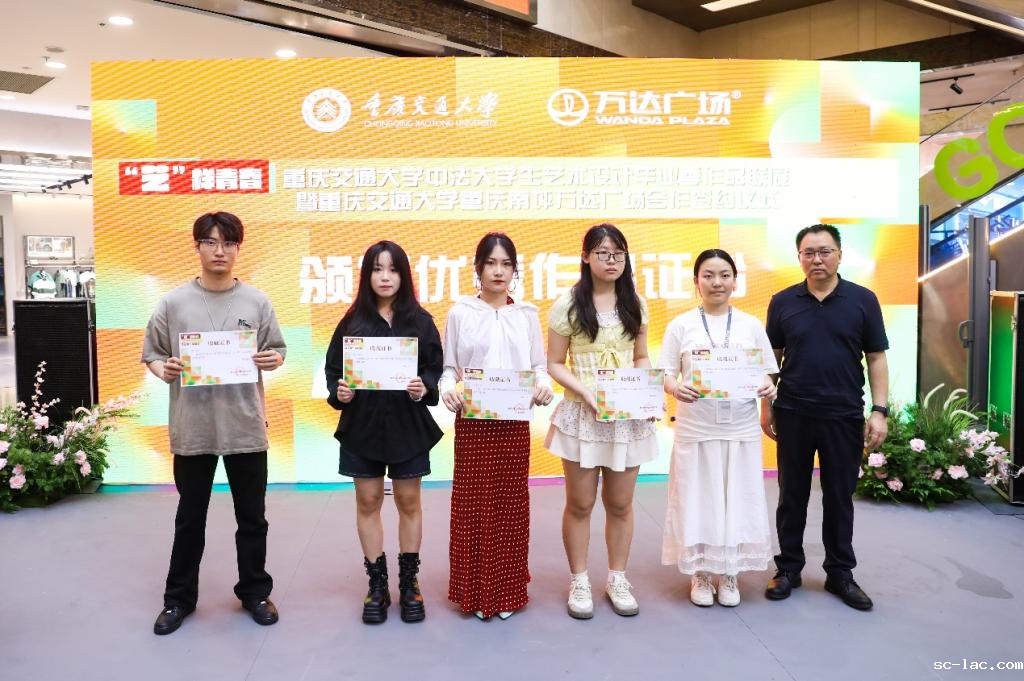 万达商管城市公司人力总经理吴小雪、悦来集团原兴城公司副总经理杨华强、重庆文化旅游集团副总经理潘铸依次为参展学生颁发了优秀作品证书。
