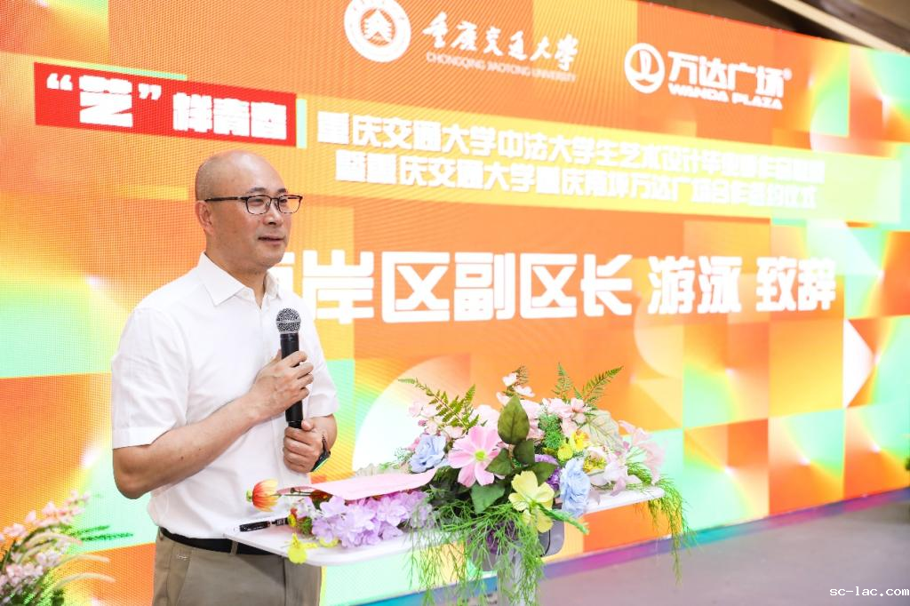 开幕式上,重庆市南岸区人民政府党组成员、副区长游泳在致辞中指出,此次活动不仅是巴渝文化与法兰西风情的艺术对话,更是南岸区打造“创意重镇”的实践。他强调,政校企三方协同将促进青年创意与城市文化、商业需求的深度融合,为南岸区建设“国际艺术会客厅”注入新动能。