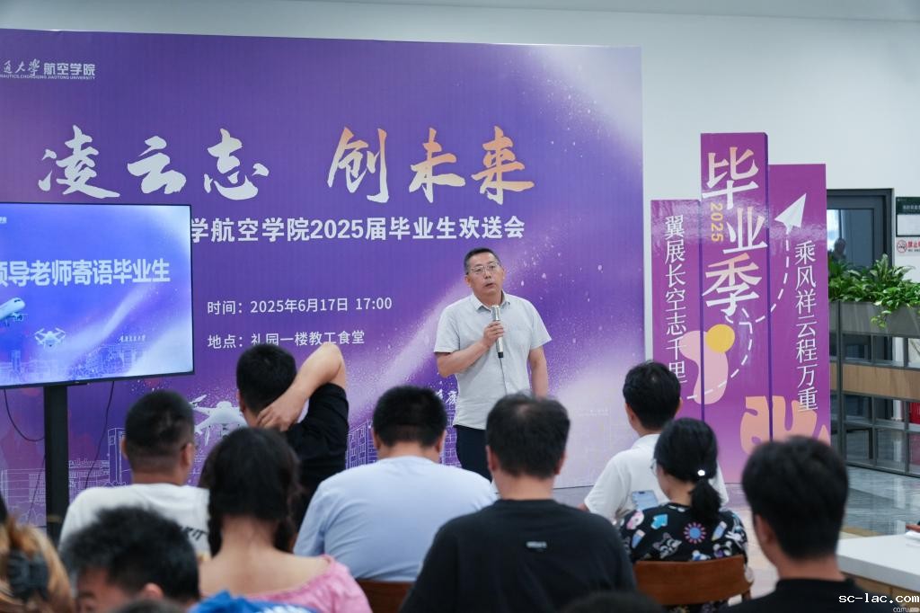 欢送会在庄严而温暖的氛围中开始。航空学院院长何义团教授首先为即将远行的学子带来饱含深情的“最后一课”。他勉励毕业生们秉承“空天报国”志向,勇担时代使命,在未来广阔的天空中展翅翱翔,为祖国航空航天事业贡献智慧和力量。