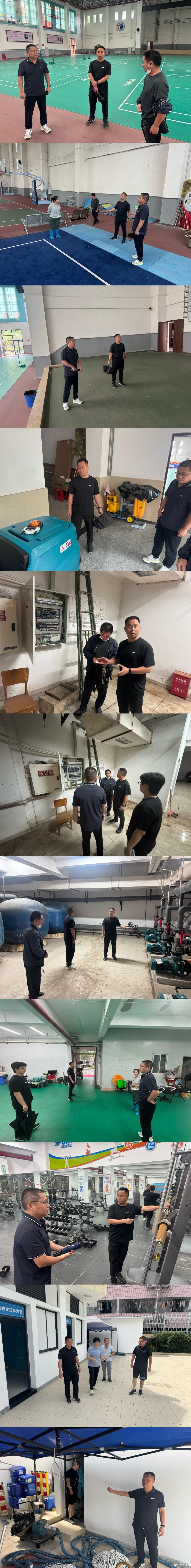 在游泳池,排查小组详细检查了救生设备、水循环系统和消毒设备及周边的防滑地面和警示标识,保证游泳池安全稳定运行。在体育馆,排查小组着重检查了场馆的照明系统、地面平整度以及体育器材的摆放情况。确保照明充足且无闪烁,地面无坑洼和障碍物,体育器材存放有序。在健身房,排查小组重点检查了健身器材的稳固性、电气设备的运行状况以及消防设施的配备情况。