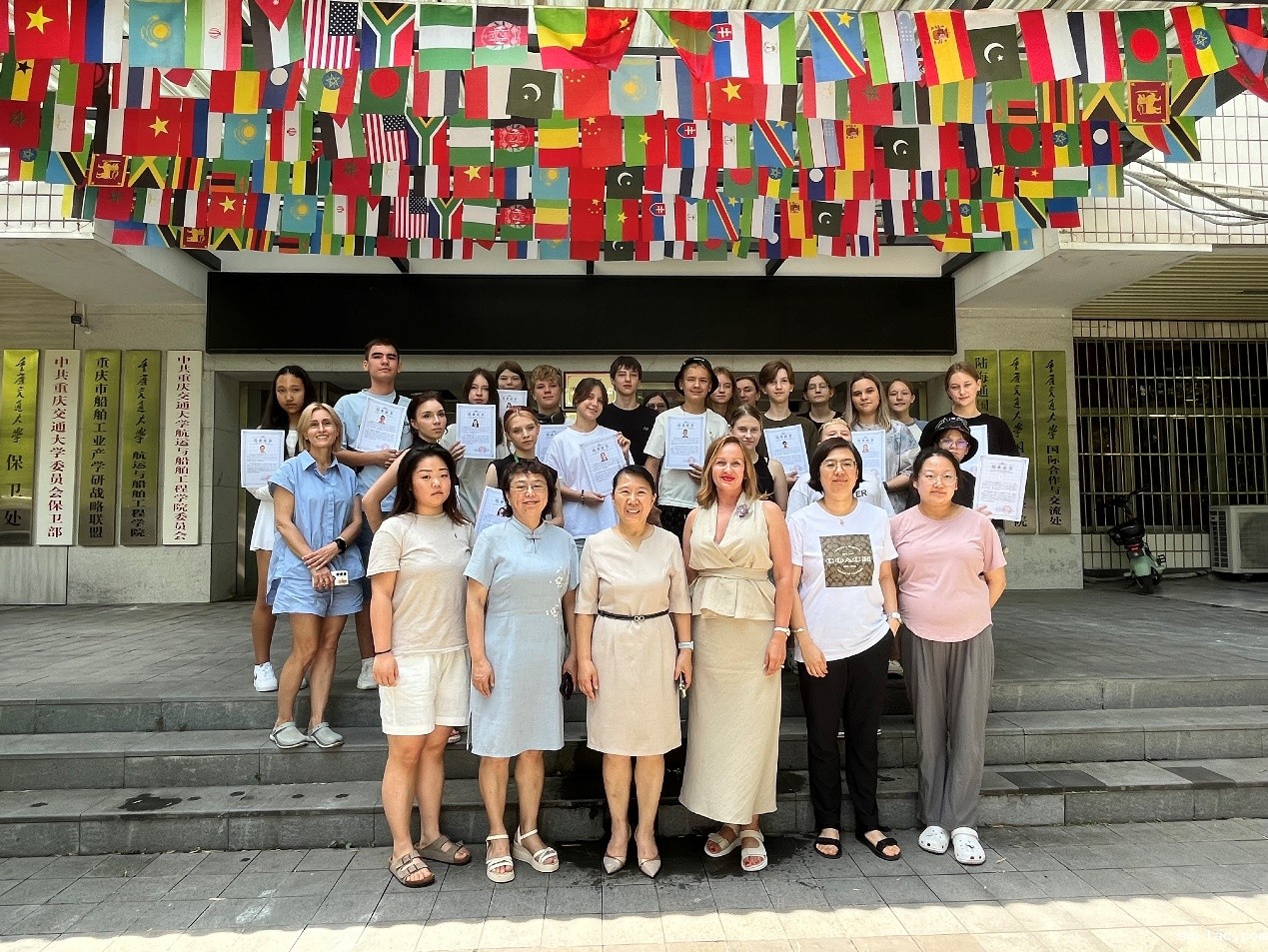 仪式最后,全体参会人员在国际教育学院大门前合影留念,为此次暑期中文夏令营画上圆满句号。本次夏令营的成功举办,为俄罗斯学生搭建了学习中文、走进交大、感知中国的交流之桥,有效增进了两国的人文交流与合作。