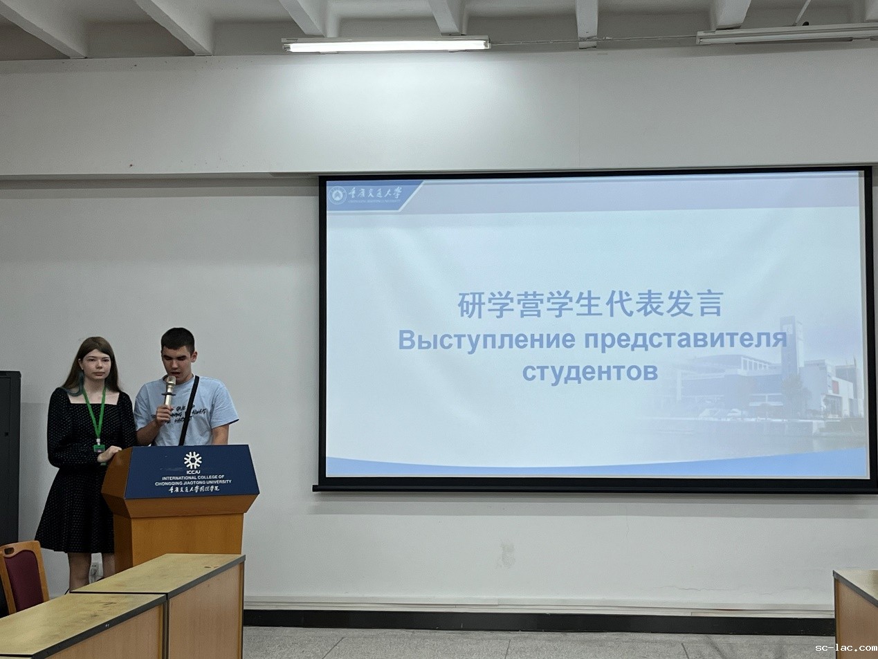 营员代表分享了研学感悟,表达了对中国的喜爱和对老师的感激之情,同时提及了科技馆、动物园、李子坝轻轨穿楼以及十八梯等重庆著名文化景点的难忘经历,称赞此次研学旅行提供了宝贵的中文实践机会,这两周的精彩时光将永存心中。