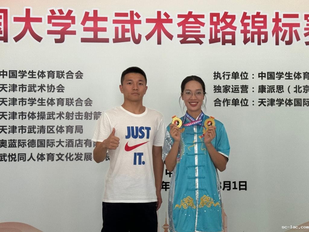 旅游与传媒学院2023级越南籍学生黎氏雪兰荣获留学生组女子甲组通臂拳、披挂拳冠军。