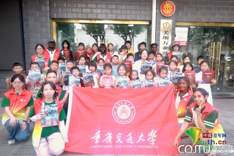 重庆交大中外学子与社区儿童交流合影 刘入溢 供图