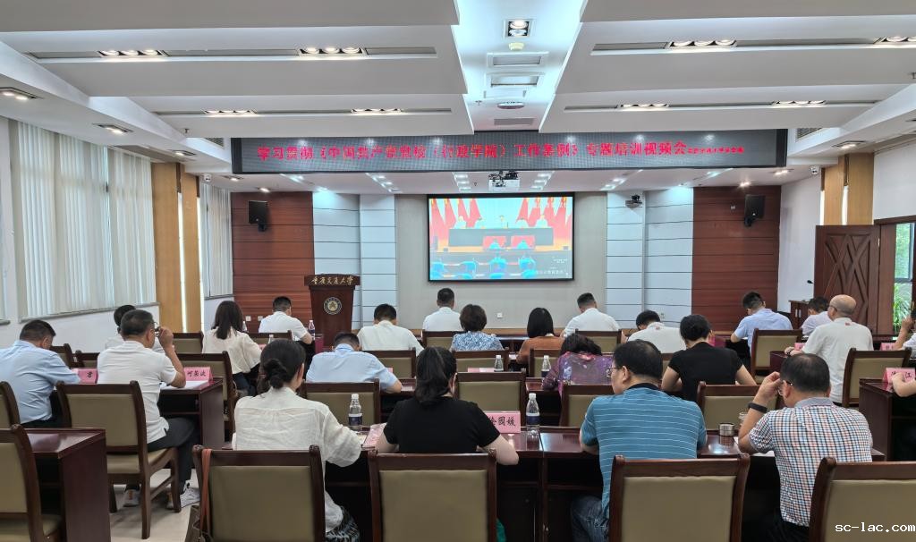会议集中收看了中央党校(国家行政学院)校长(院长)陈希在中央党校(国家行政学院)学习贯彻《条例》会议上的讲话以及分管日常工作的副校长(副院长)谢春涛专题辅导报告视频。中共重庆市委党校(重庆行政学院)常务副校(院)长刘晓吾同志讲话。