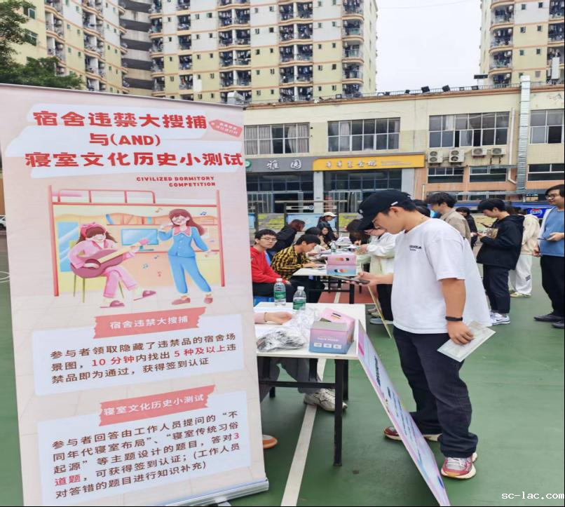 活动以“趣味互动+知识传递”为核心,设置四大独立关卡,让参与者在挑战中收获知识与乐趣。“宿趣拼图”个人挑战里,大家自选不同难度关卡,在规定时间内专注拼接,锻炼空间思维与专注力;“宿舍猜猜乐”环节,组织方将宿舍违禁品与常见物品做成一个个谜语,大家在猜谜语中,熟悉宿舍规则。工作人员还会针对猜错的违禁品讲解安全风险;“宿舍违禁大搜捕”中,参与者紧盯隐藏违禁品的宿舍场景图,找出违禁品,进一步强化违禁品识别能力;“寝室文化历史小测试”围绕“不同年代寝室布局”“寝室传统习俗起源”等主题提问,让大家了解学生社区历史文化,加深对学校的感情。活动现场同学们积极热情投入,现场氛围热烈。