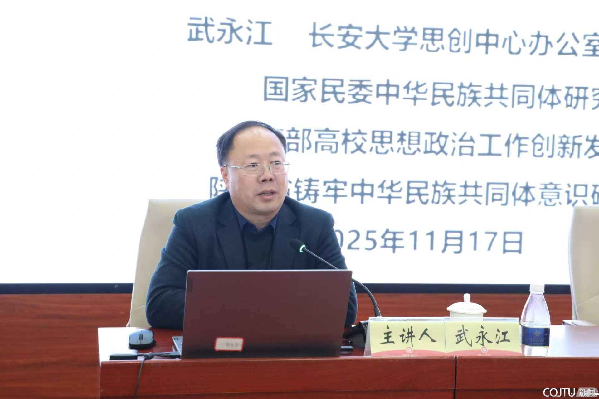为深入学习贯彻党中央关于党委(党组)落实统战工作责任制的有关规定,提升维护学校统战领域安全稳定的能力,11月17日,由党委统战部、党委学生工作部联合举办的2025年全校统战工作专题培训在明德楼408会议室顺利举行。本次培训特邀教育部高校思想政治工作创新发展中心(长安大学)办公室主任武永江教授作专题辅导报告。培训会由校党委常委、组织部部长、统战部部长任海涛主持。