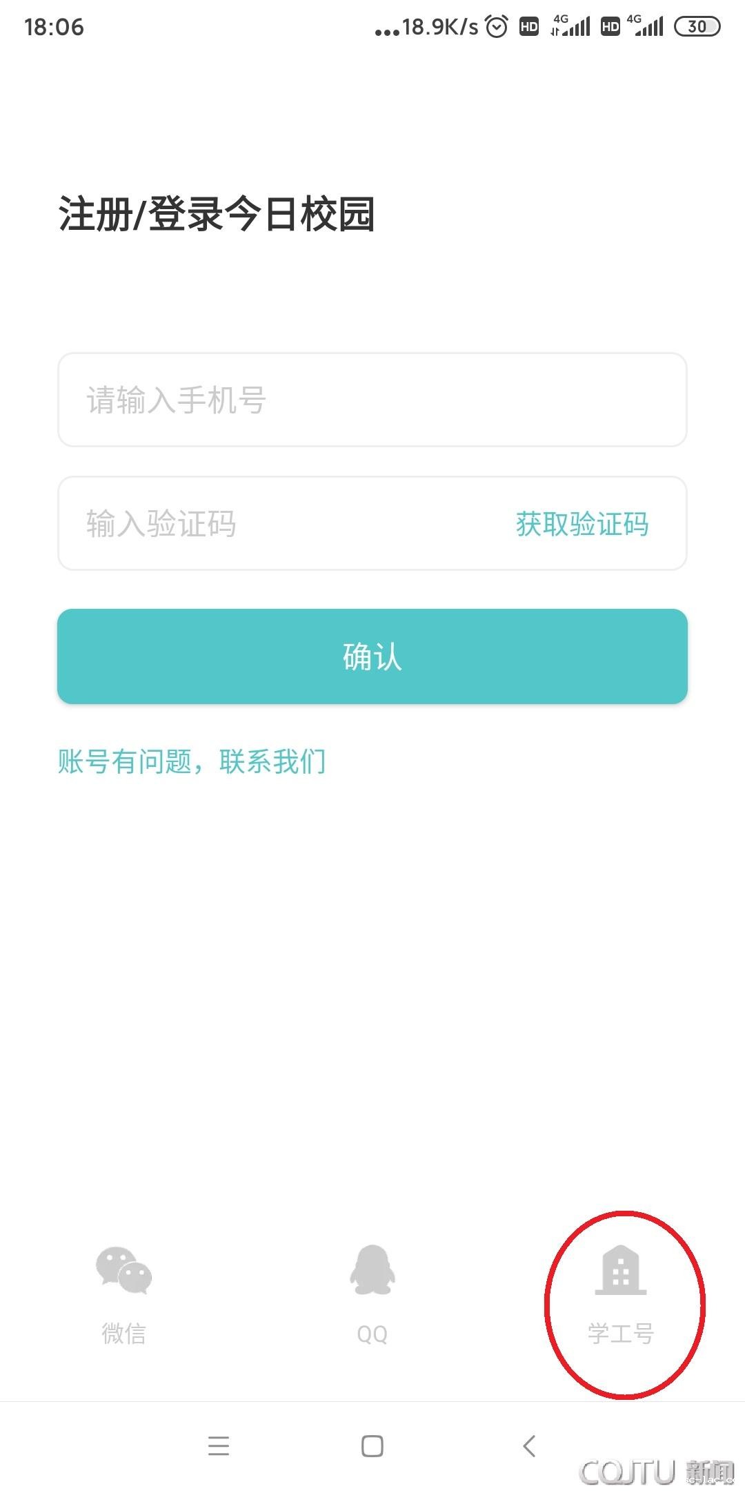 a.打开今日校园APP,点击右下角“学工号”登陆。