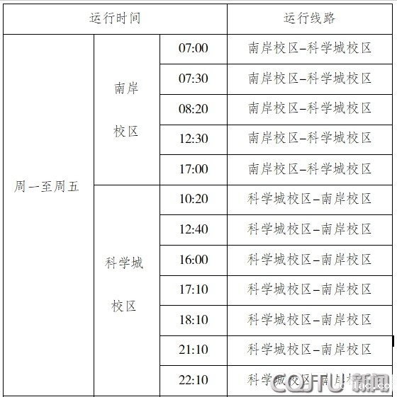 根据学校工作安排,2022年秋季学期科学城校区教职工交通车运行时间和线路安排如下。