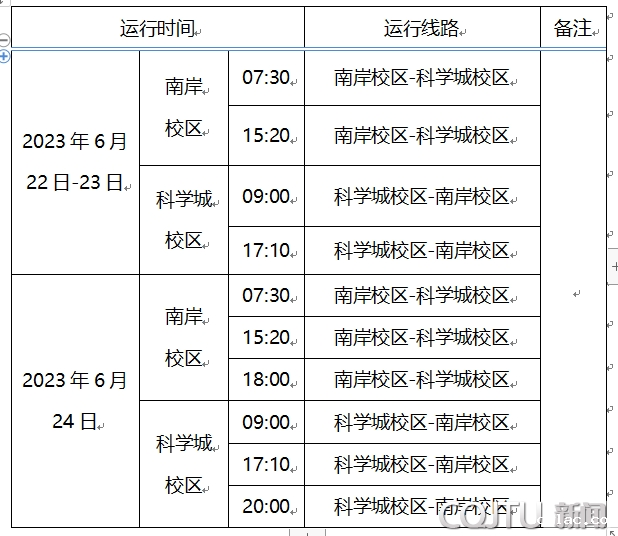 根据学校工作安排,2023年“端午节”假期双校区交通车运行时间及线路如下: