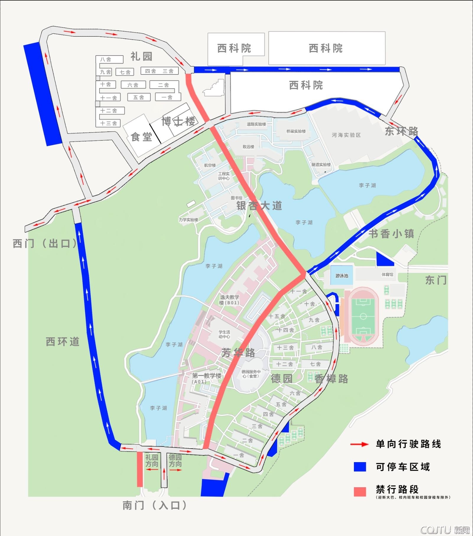 二、校区芳华路、银杏路仅限学校交通车、迎新大客车、校园穿梭车通行,其它车辆一律不得驶入该区域。