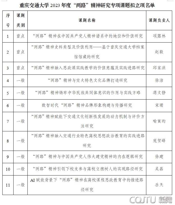根据《老伟德网上娱乐关于组织申报“两路”精神研究专项课题的通知》,经教师申报、单位推荐、形式审查和学校组织专家匿名评审,最终确定11个课题拟予立项,其中重点课题3项,一般课题8项(详见附件),现予以公示。