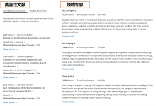 Scopus AI还开发了新的算法用于找出该研究领域的核心引用文章以及该领域专家,帮助读者了解该研究领域的奠基性文献并跟踪顶尖专家的科研进展。