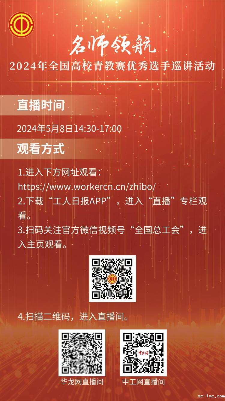 为贯彻落实党的二十大精神和习近平总书记教师节重要指示精神,大力弘扬劳模精神、劳动精神、工匠精神和教育家精神,发挥先进典型引领示范作用,助力高校教师队伍素质整体提升,服务教育强国建设,“名师领航”2024年全国高校青教赛优秀选手巡讲活动将于5月8日在重庆举行。活动旨在充分运用全国青年教师教学竞赛工作成果,传播先进教育理念和教学方法,激发广大教师教学热情,助力高等教育高质量发展。