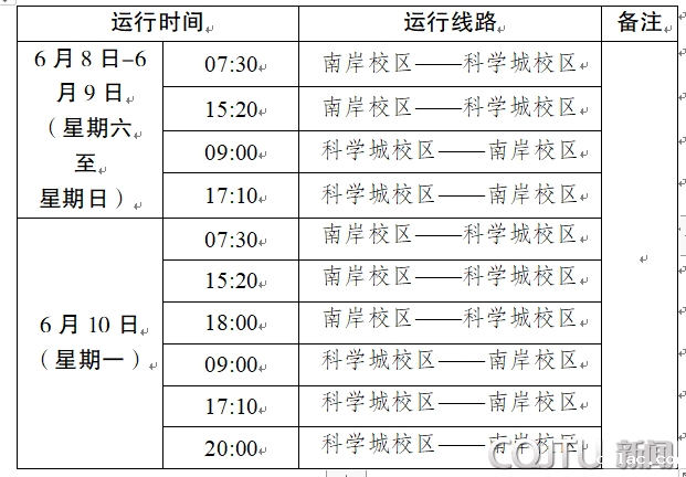 备注:6月11日(星期二)起交通车按正常工作日运行。