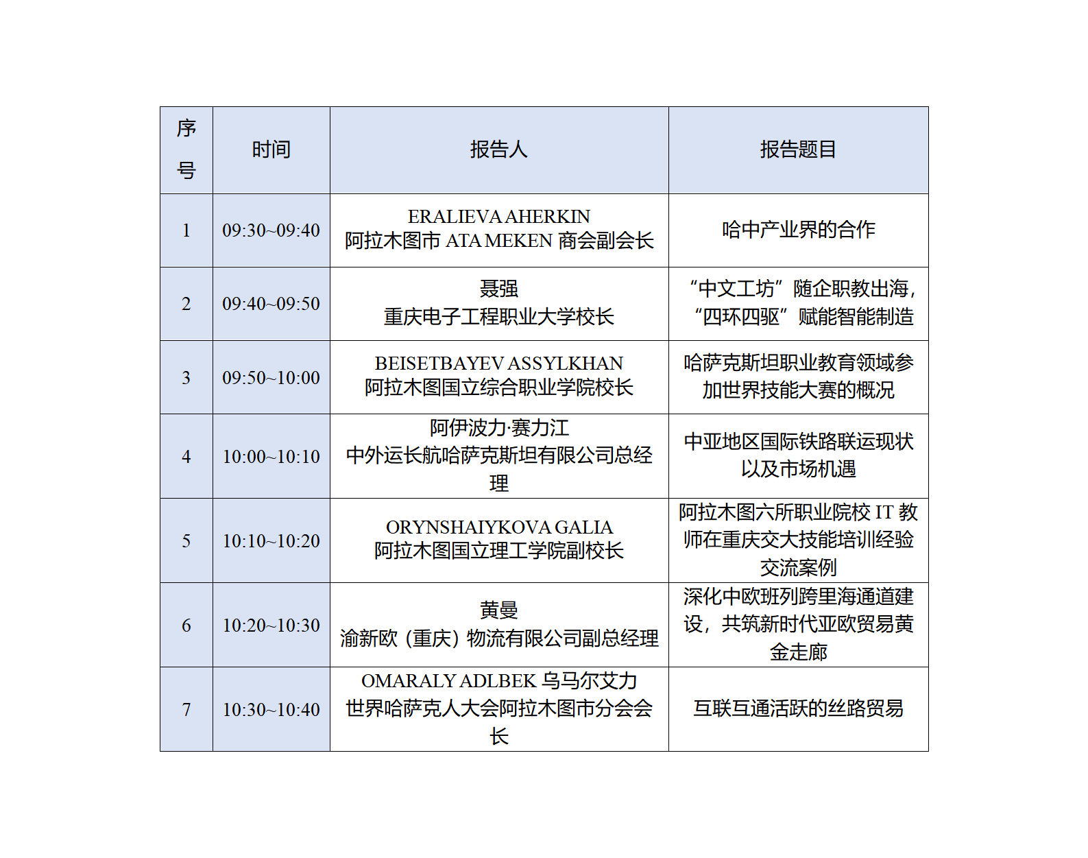第四届重庆与中欧班列沿线国家产学研合作(哈萨克斯坦)国际论坛议程