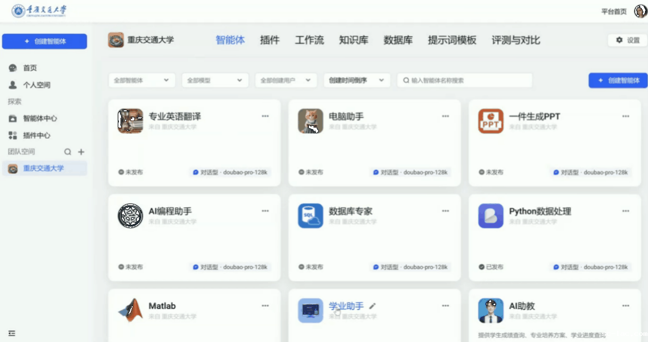 学校即将推出的基于DeepSeek-R1/V3满血版的智能体公共开发平台汇聚了众多领域智能应用,并有学业助手、AI助教等服务功能。平台提供了一系列开发工具和接口资源,只需使用口语化指令即可完成知识库构建、逻辑编排和API调用等操作,帮助师生快速开发定制个性化应用。