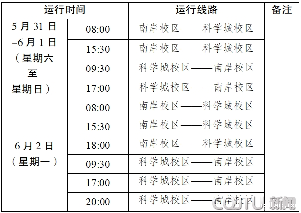 备注:6月3日(星期二)起交通车按正常工作日运行。