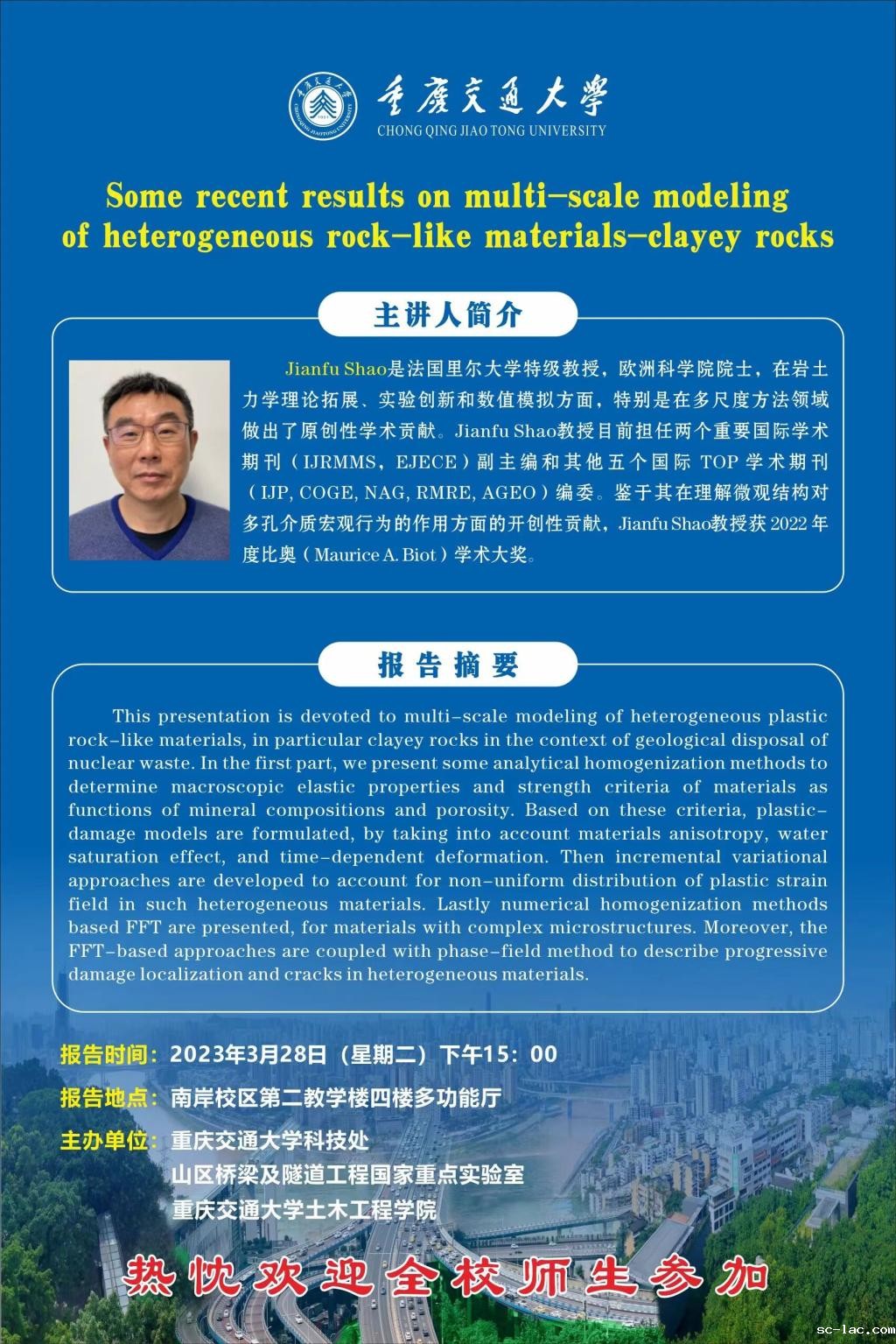 学术讲座:Some recent results on multi-scale modeling of heterogeneous rock-like materials-clayey rocks