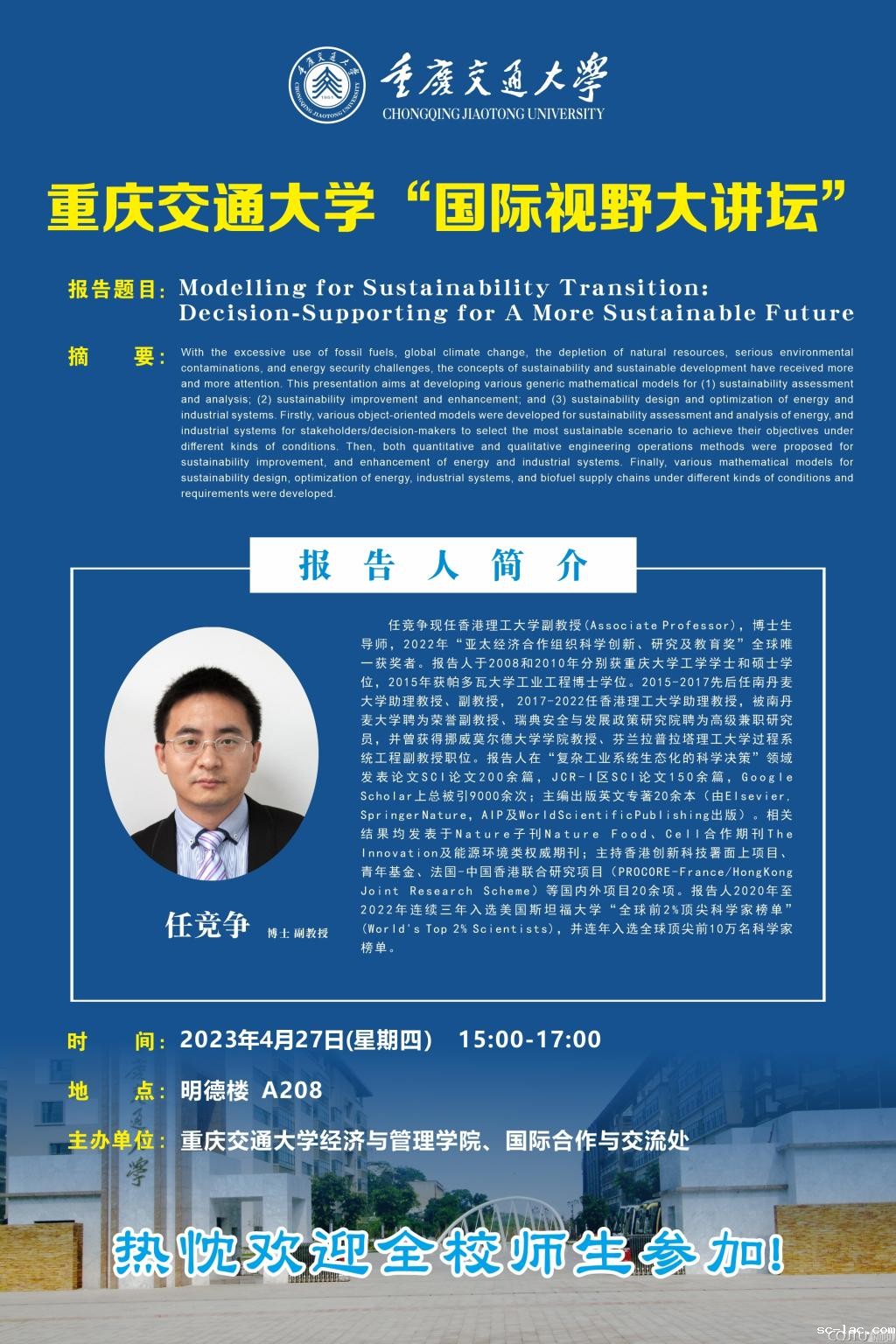 经管学院学术讲座:Modelling for Sustainability Transition: Decision-Supporting for A More Sustainable Future