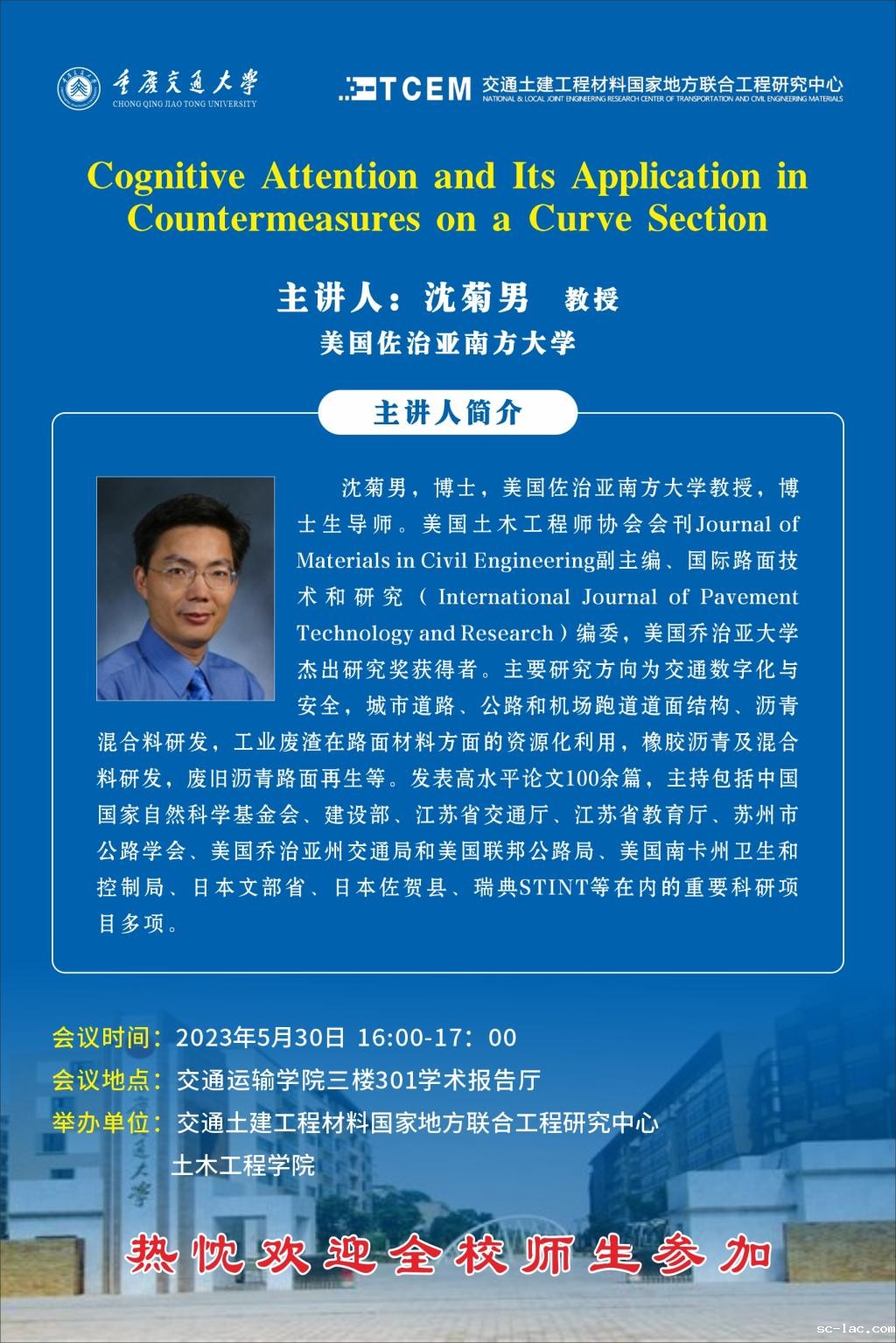 土木工程学院学术讲座:Cognitive Attention and Its Application in Countermeasures on a Curve Section
