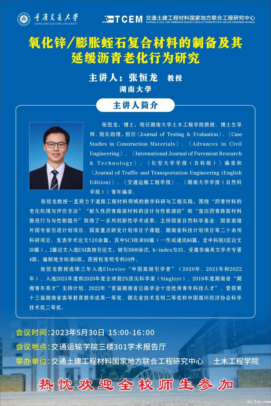 土木工程学院学术讲座:氧化锌/膨胀蛭石复合材料的制备及其延缓沥青老化行为研究