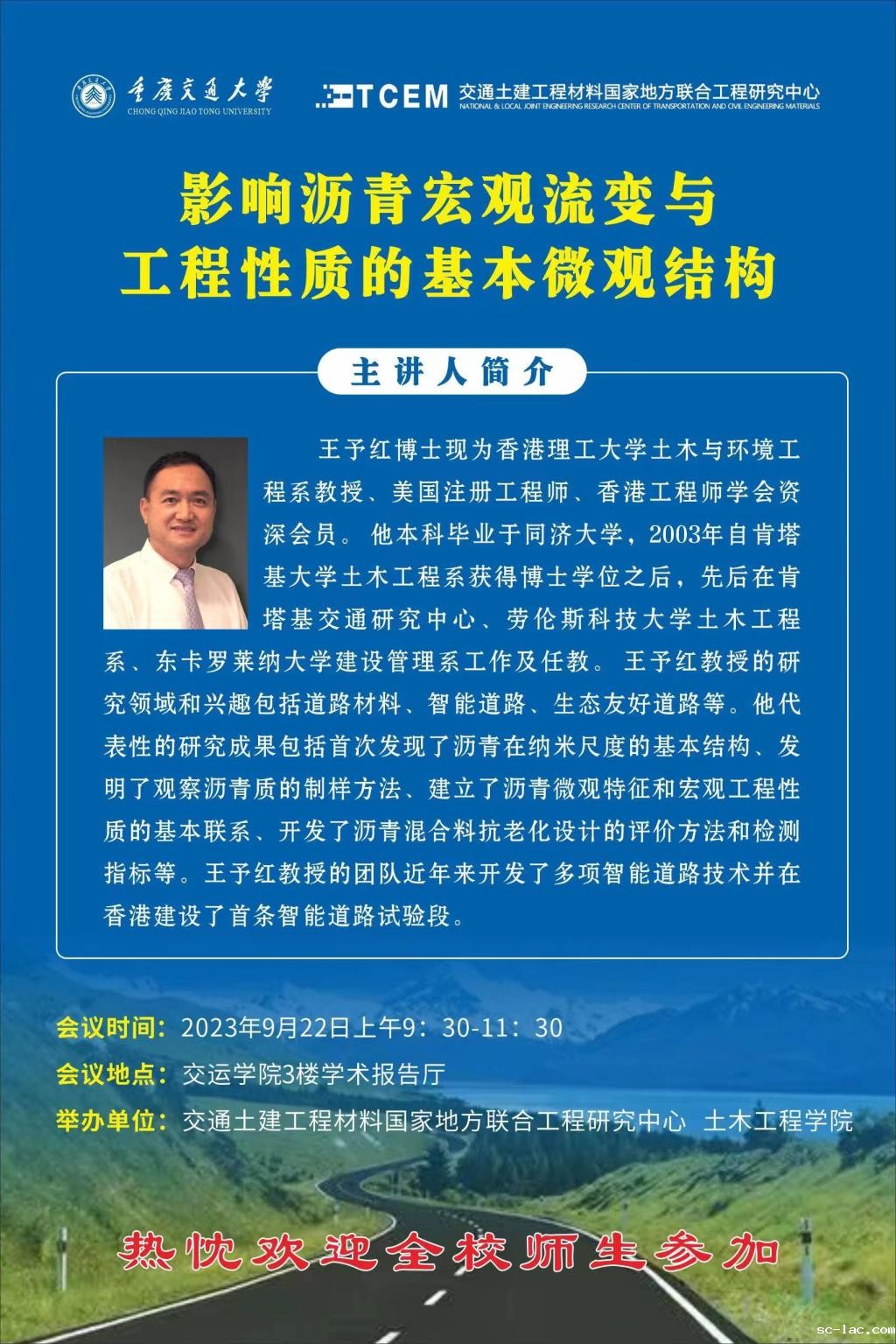 日期:2023年09月18日 20:43 作者:交通土建工程材料国家地方联合工程研究中心 来源:交通土建工程材料国家地方联合工程研究中心 点击率: