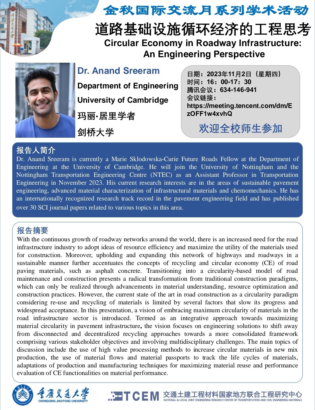 金秋国际交流月系列学术活动:道路基础设施循环经济的工程思考