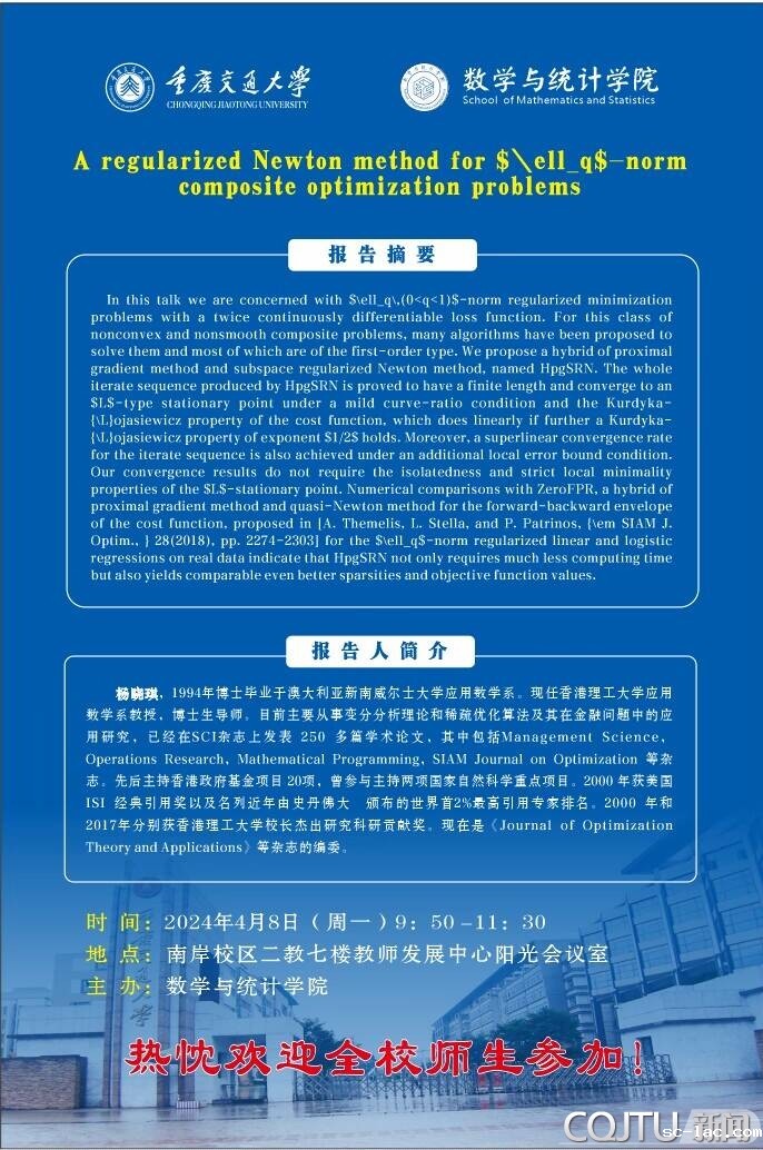 数统学院学术报告:A regularized Newton method for $\ell_q$-norm composite optimization problems